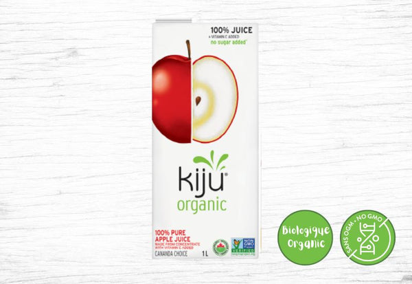 Optez pour un classique avec notre jus de pomme biologique 100 % pur Kiju. Ce jus de pomme non sucré est délicieusement pur et simple. Bon pour vous et les personnes qui vous sont chères. Au moment des repas, des pauses ou dès que vous avez besoin de vous hydrater, ce jus de pomme pur offre des saveurs sans compromis qui font du bien.Bio, tout simplement. Les jus biologiques Kiju sont faits à partir de fruits biologiques SANS OGM. Et sans sucre ajouté, évidemment. Parce que vivre un mode de vie bio devrait être le choix le plus simple que vous puissiez faire aujourd’hui.Servir frais. Bien agiter avant d’ouvrir. Réfrigérer après ouverture et consommer de préférence dans les 10 jours suivant l’ouverture.
