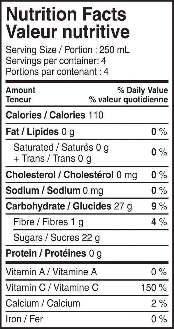 • 100 % jus• Certifié biologique• Sans OGM• Excellente source de vitamine C• Arôme naturel• Sans sucre ajouté • Emballage recyclable