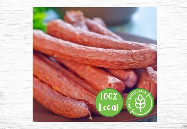Découvrez nos pepperettes en spécial, une collation parfaite pour les amateurs de viande de qualité. Fabriquées à partir d'ingrédients naturels et de porc élevé sans hormones ni antibiotiques, nos pepperettes sont idéales pour satisfaire une petite faim ou pour être emportées lors de vos sorties. Faciles à transporter, elles sont également parfaites pour un encas rapide, tout en restant saines et pleines de saveurs.
